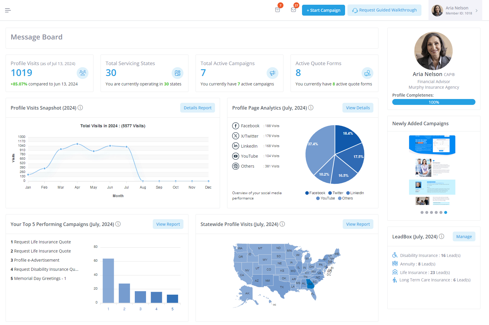 Gain a comprehensive overview of your marketing efforts and seamlessly track visitor traffic from various channels. A one-of-a-kind platform for insurance and financial professionals.